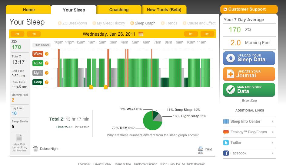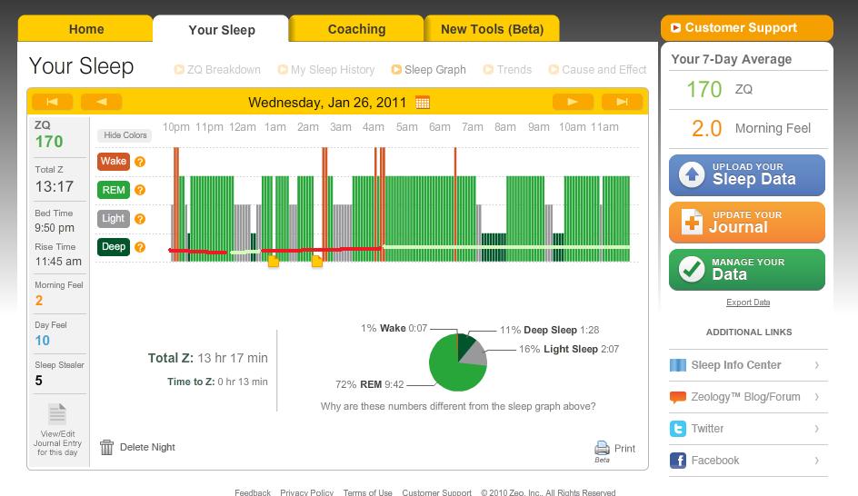 Last night I tried out my gift of the Zeo Sleep Coach for the first time. It didn’t go so well.