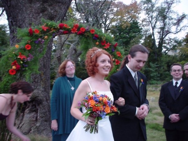 Thanks, rosfromscratch. I always tell people that Chimp and I both think we got the better end of the bargain. It’s a nice way to feel. And I picked that bouquet out of an FTD booklet…a friend is planning her wedding now and I’ve been looking through ideas with her…and I ran across that bouquet included on a website! I’d pick it all over again.